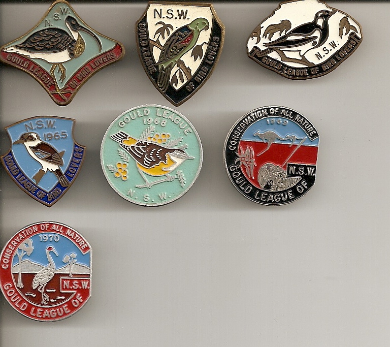 - The above are items of memorabilia belonging to the author. Some of the Gould League badges are hand-me-downs from siblings, while other badges represent annual membership when the author belonged to the League during primary school years.